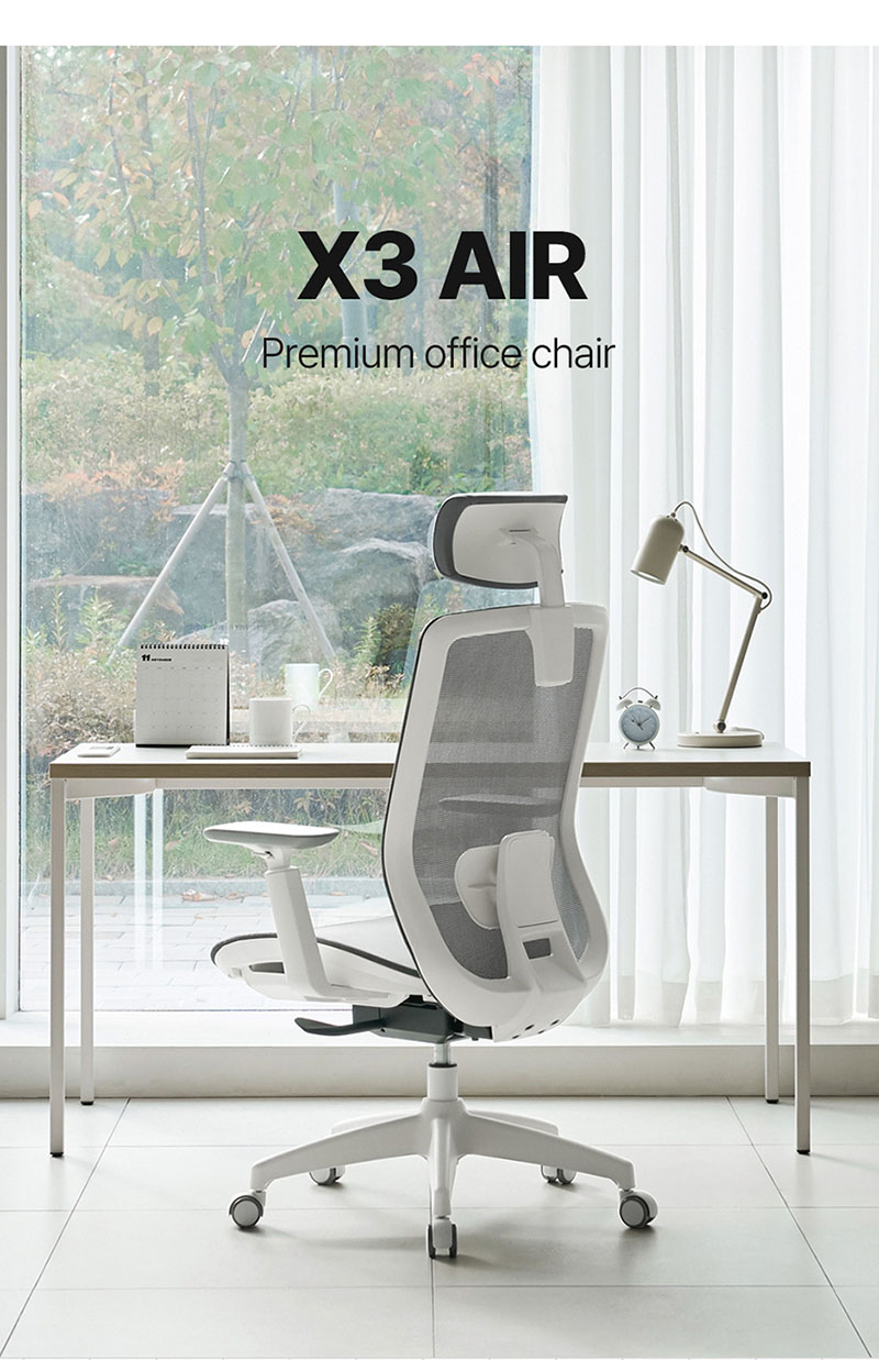 [에르먼] X3 AIR 국내생산 하이엔드 프리미엄 사무용 사무실 허리편한 에어메쉬 책상의자