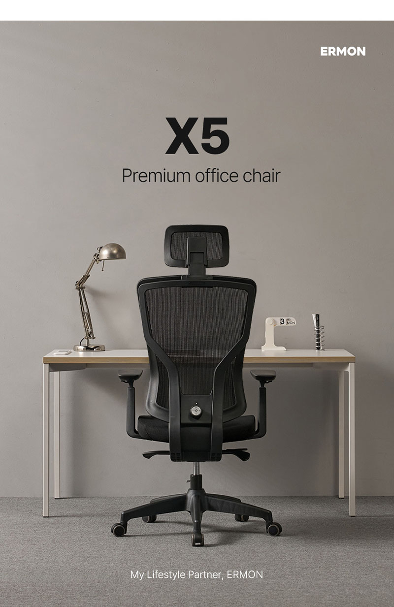 [에르먼] X5 국내생산 하이엔드 프리미엄 사무용 컴퓨터 허리편한 에어메쉬 책상의자